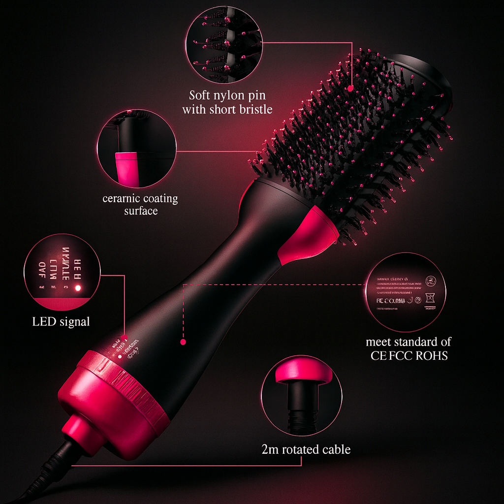 Este Cepillo Secador 3 en 1 está diseñado para mujeres que quieren cabello liso, con volumen y brillante, sin esfuerzo y sin quemarlo.