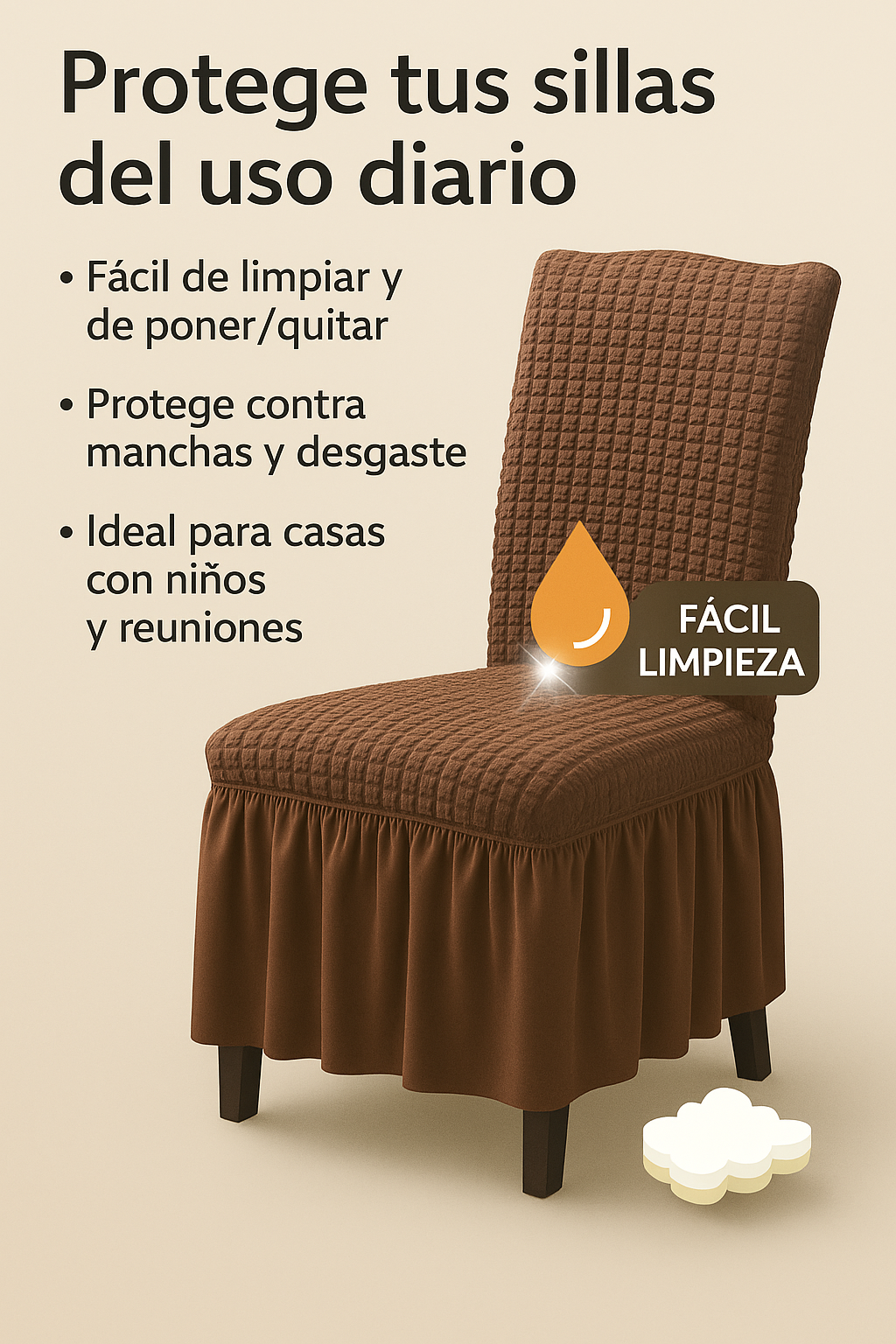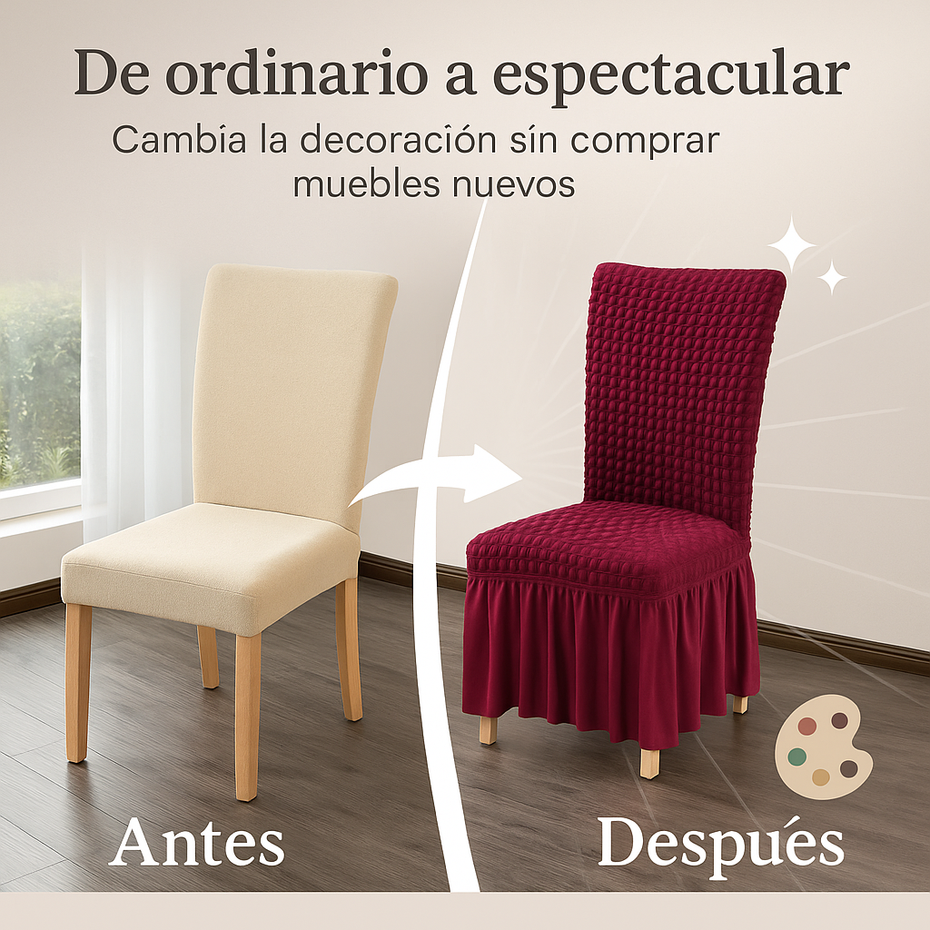 Convierte tus sillas comunes en piezas elegantes y protegidas en segundos.